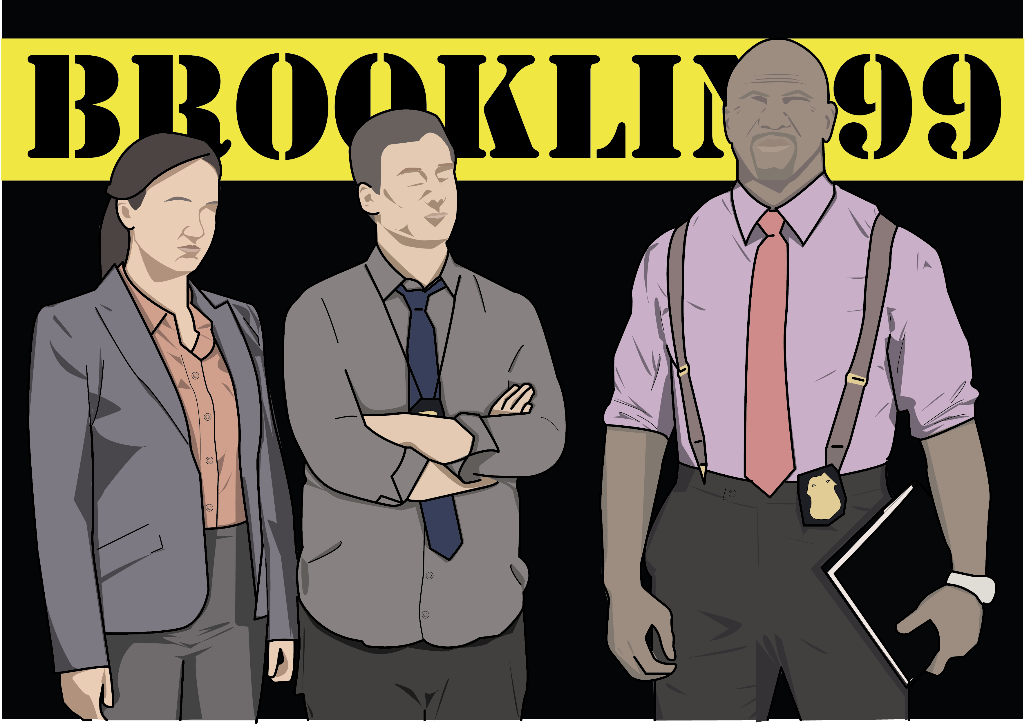 Dieses Projekt entstand zu Beginn meiner Ausbildung als Übung in Adobe Illustrator. Die Aufgabe war, eine Szene aus einem Film oder einer Serie zu illustrieren. Ich entschied mich für eine Szene aus Brooklyn Nine-Nine, da ich die Serie zu diesem Zeitpunkt gerade geschaut habe.